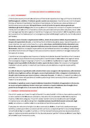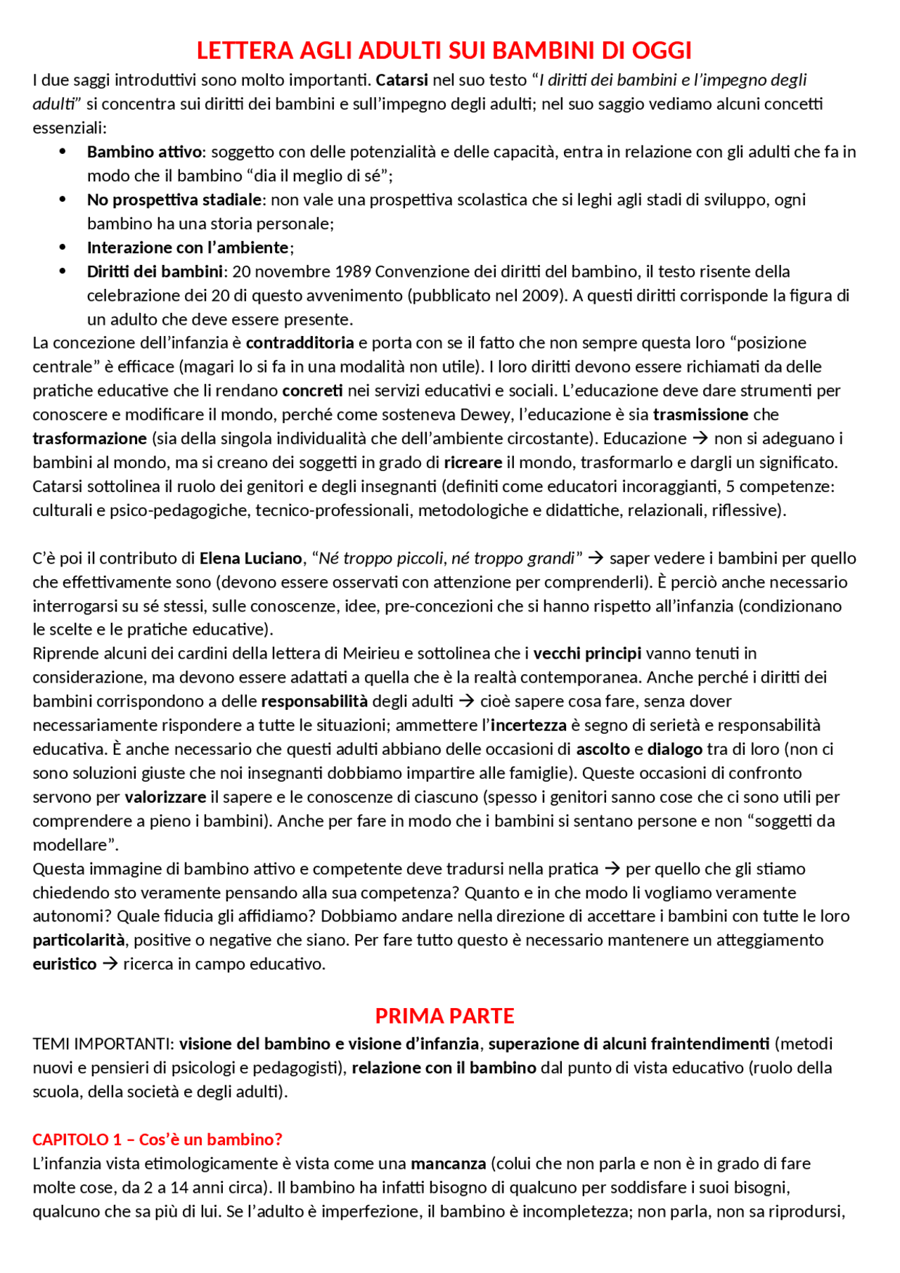 Lettera agli adulti sui bambini di oggi - StuDocu LETTERA AGLI ADULTI SUI BAMBINI DI OGGI Prefazione e parte 1 Vi sono due saggi importanti: il primo di Enzo catarsi il secondo di Elena Luciano Si concentra in particolare sui diritti dei bambini e l'impegno degli adulti. Nel suo breve saggio possiamo vedere alcuni concetti essenziali: